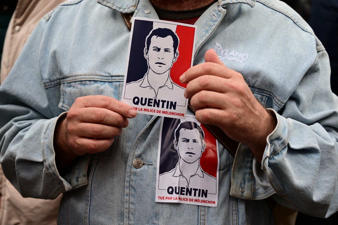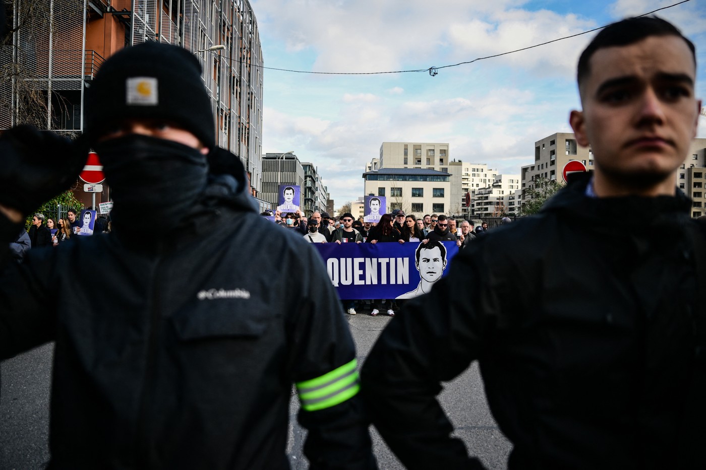 VečShod poteka v spomin na 23-letnega Quentina Deranquea, ki je prejšnji teden umrl v bolnišnici zaradi poškodb, ki jih je utrpel, ko ga je pred univerzo v Lyonu nekaj dni prej pretepla skupina najmanj šestih oseb, povezanih s skrajno levico.
