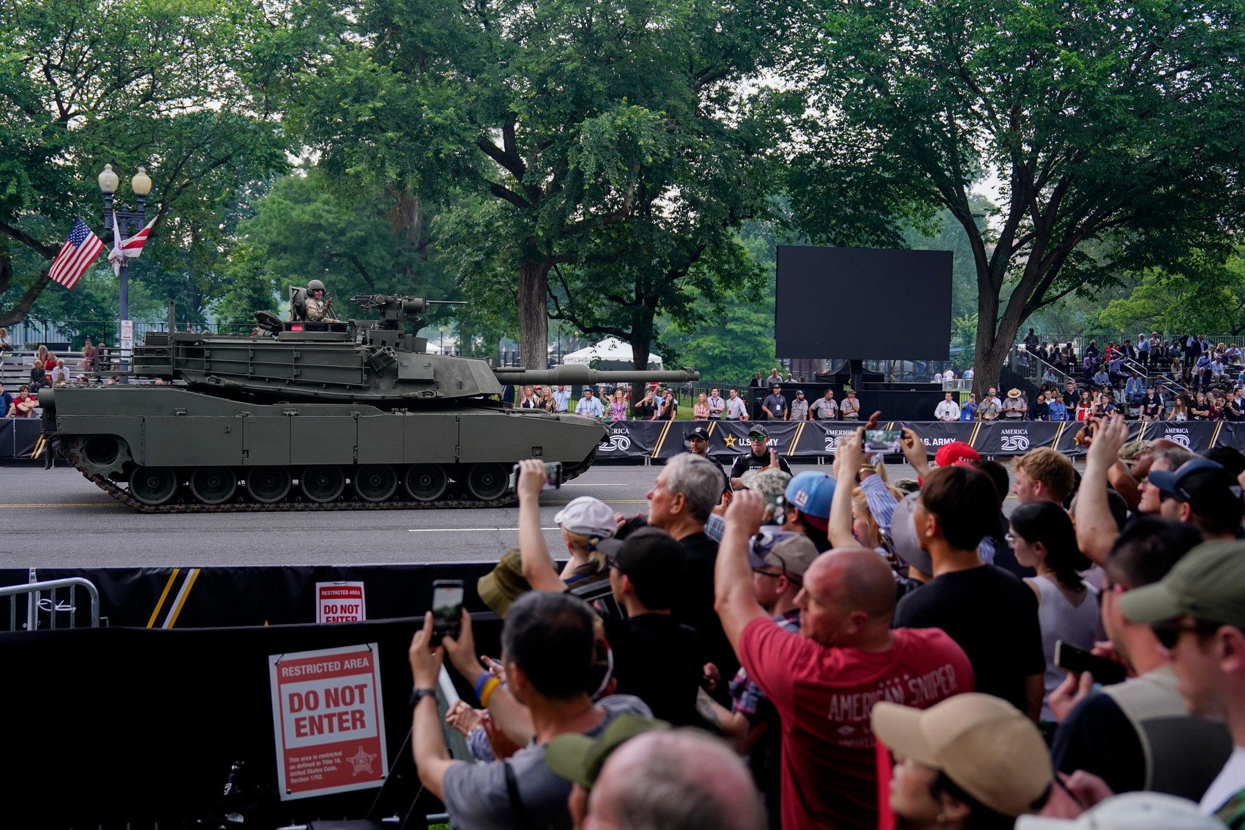 CBS je citiral navedbe vojske, da je bilo v paradi med drugim udeleženih 26 tankov M1A1 Abrams, 27 bojnih vozil Bradley, dva tanka Sherman iz druge svetovne vojne, Renaultov tank iz prve svetovne vojne, osem helikopterjev CH-47, 16 letal UH-60 Black Hawk in štiri letala P-51 iz druge svetovne vojne.