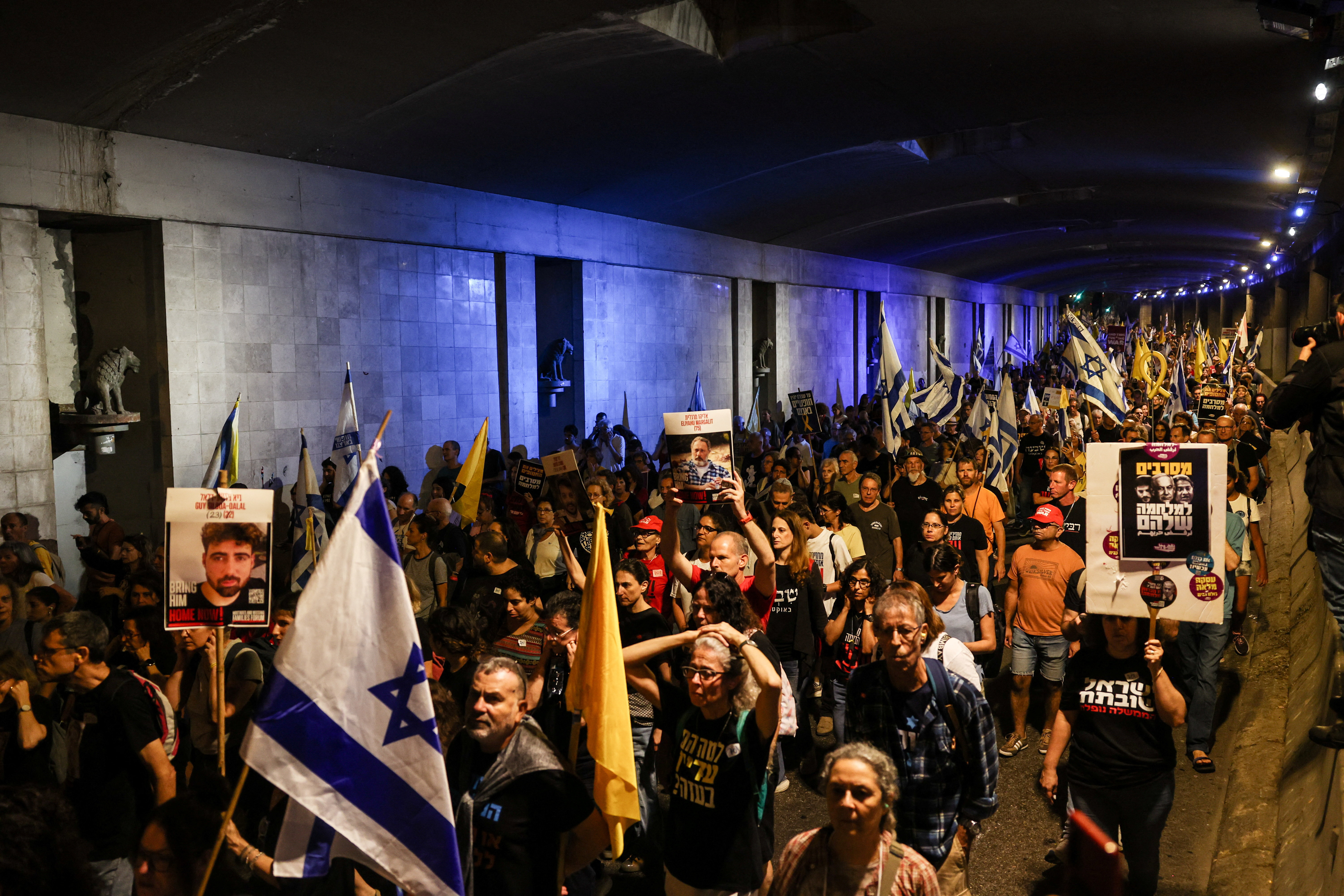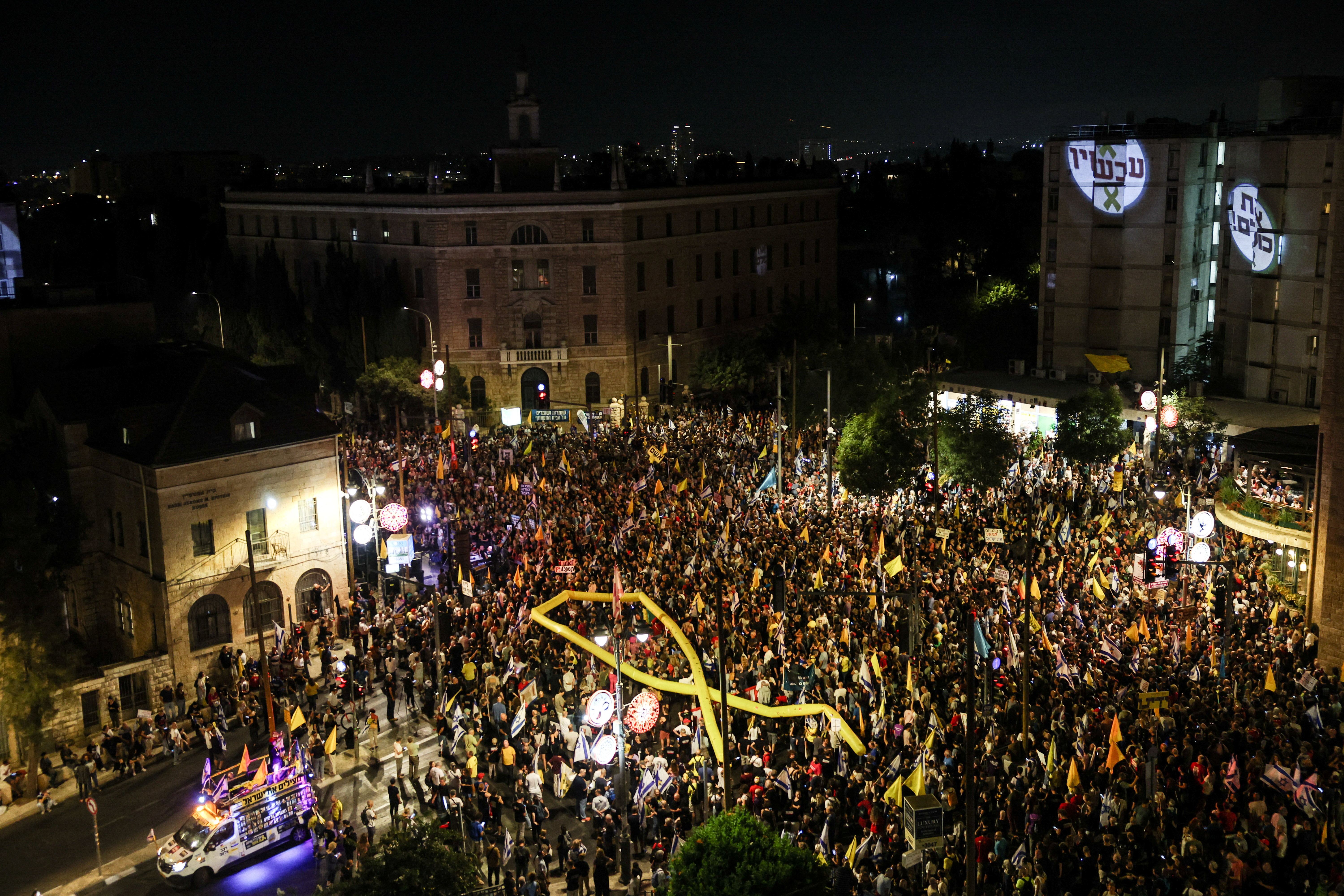 Forum, ki zastopa družine zajetih talcev, je pozval Netanjahuja, naj nemudoma pošlje pogajalsko skupino na pogovore o končanju vojne v palestinski enklavi in zagotovi izpustitev vseh talcev. Po poročanju časnika Times of Israel se je enih največjih demonstracij v Jeruzalemu doslej, na katerih so ljudje zahtevali sklenitev dogovora o talcih, v soboto zvečer udeležilo več deset tisoč ljudi.