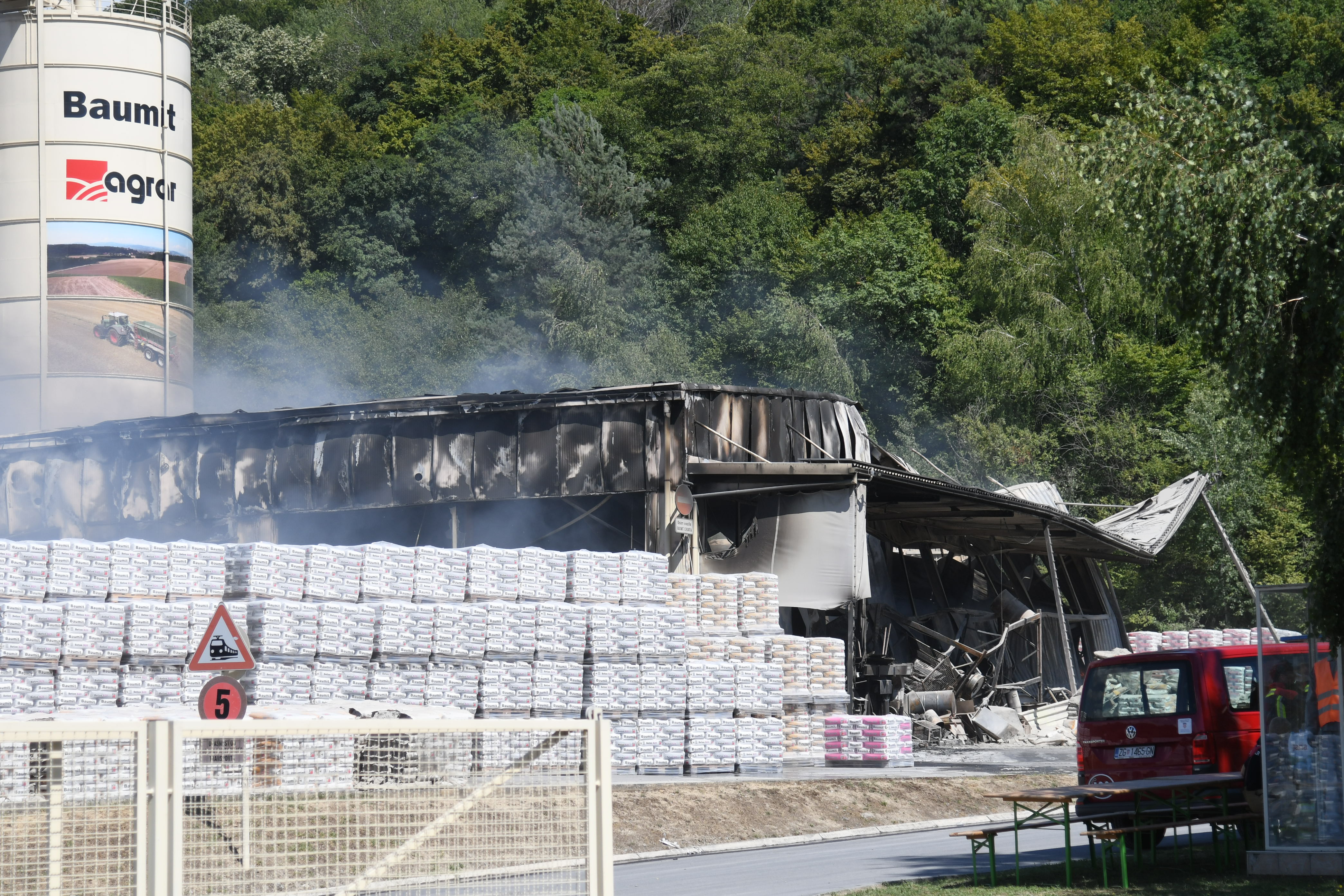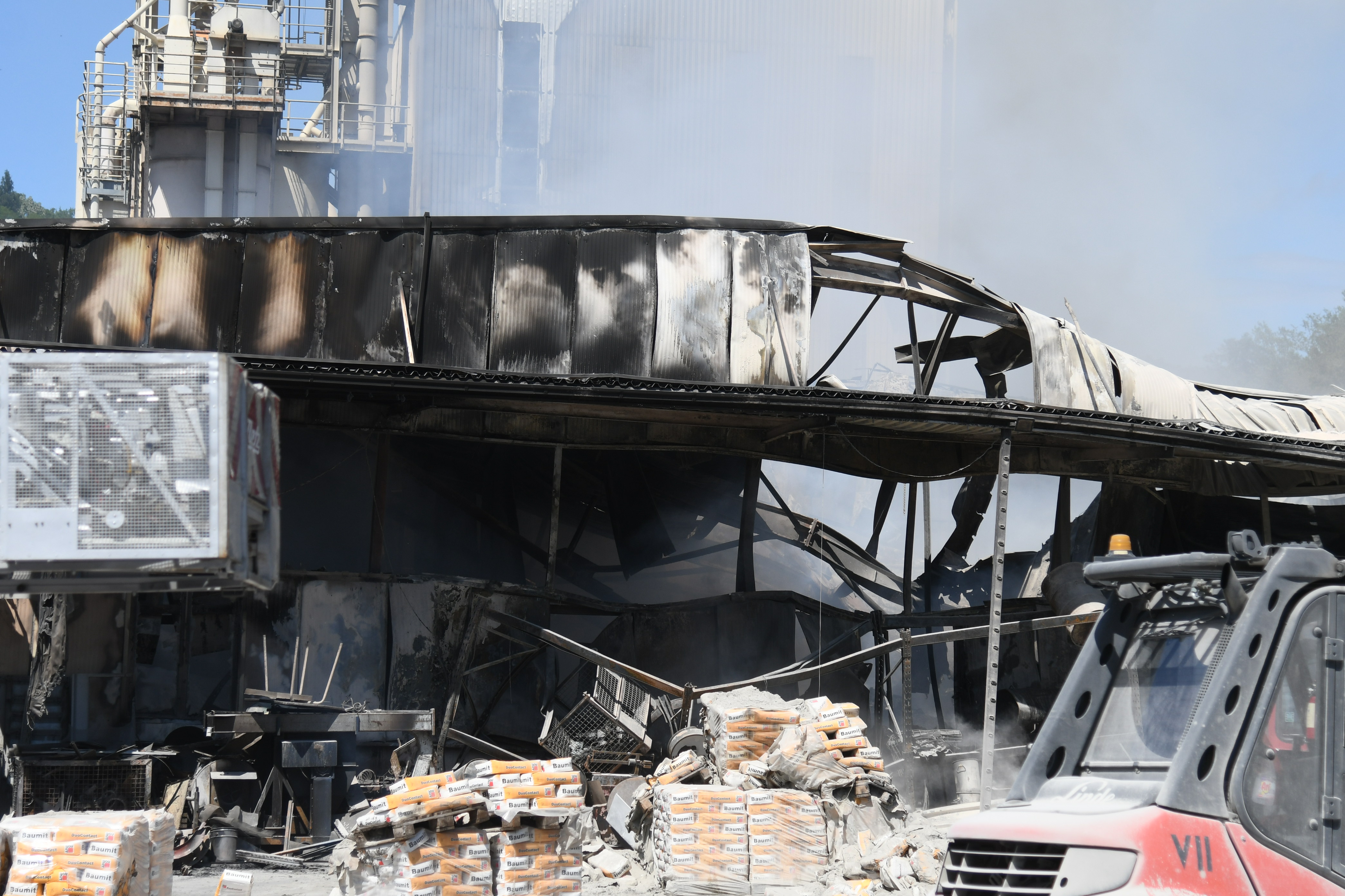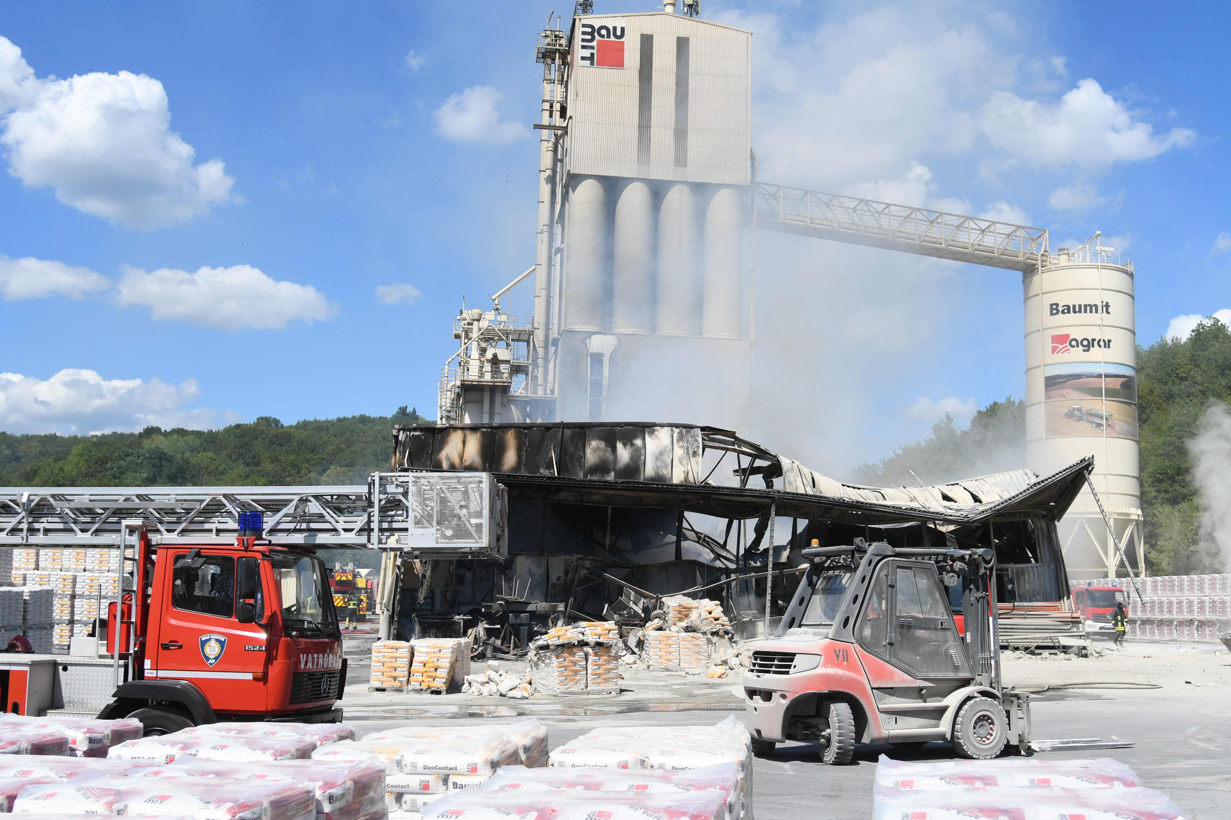 Medtem ko je hala gorela, so poskušali delavci z viličarji rešiti Baumitove izdelke, da bi čim bolj zmanjšali škodo, še poroča MojPortal.