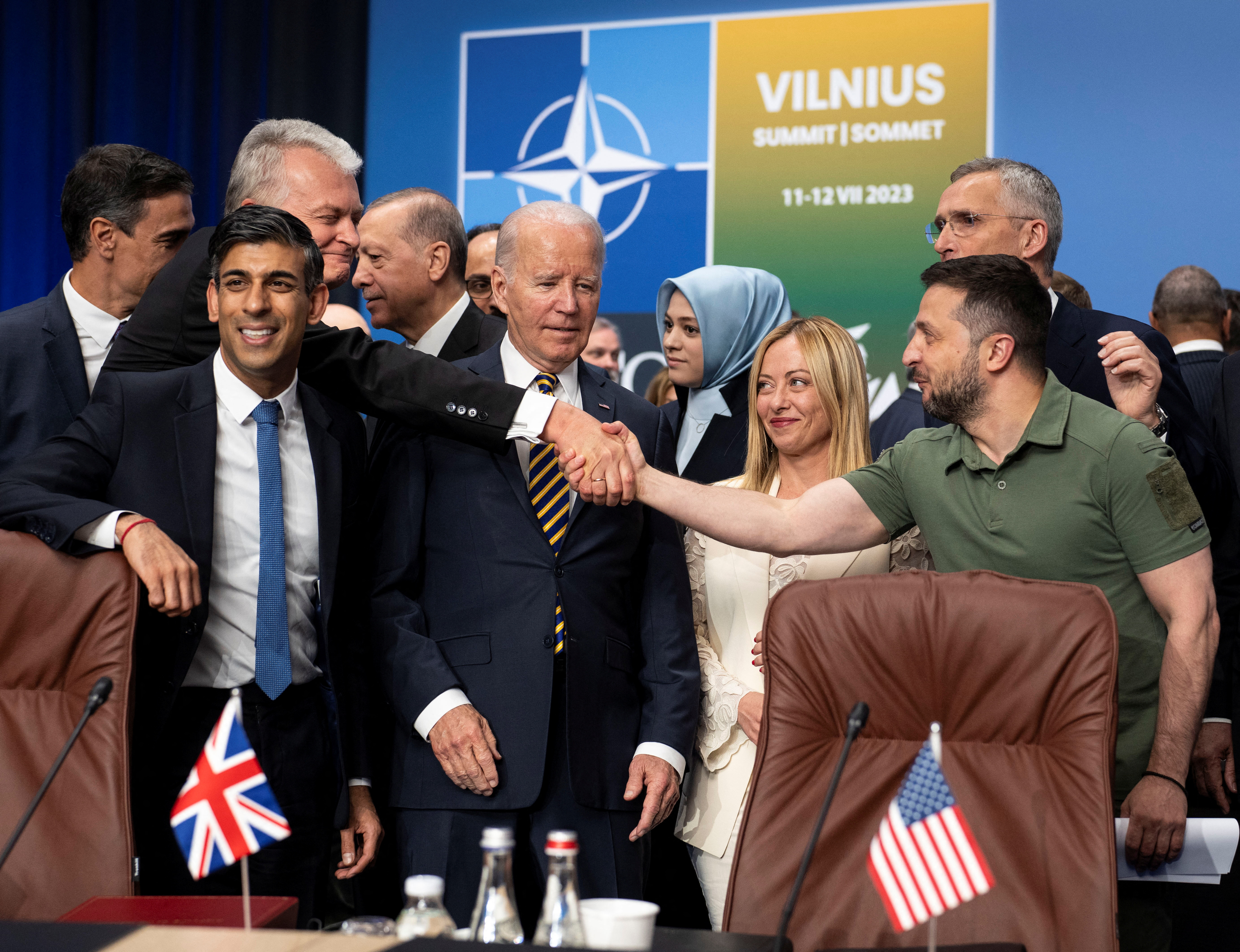 Voditelji držav članic zveze Nato se se v Litvi srečali z ukrajinskim predsednikom Volodimirjem Zelenskim, ki si prizadeva, da bi se njegova država čimbolj in čimprej približala zavezništvu, če že ne more nemudoma postati njegova članica. Nato je sicer v torek sklenil, da bo Ukrajini ponudil pridružitev po enostavnejši poti. Članice skupine G7 bodo Ukrajini zagotavljale varnost pred kakršnokoli agresijo, pa je po koncu vrha voditeljev držav Nata sporočil ameriški predsednik Joe Biden.