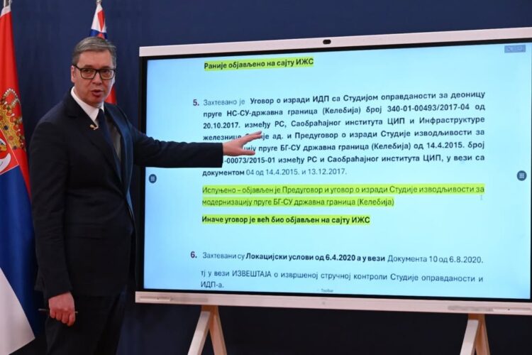 Ministrstvo za gradbeništvo, promet in infrastrukturo je na vladni spletni strani tako danes objavilo dodatnih 240 točk relevantne dokumentacije v povezavi z zrušenjem nadstreška v Novem Sadu. Po Vučićevih besedah je tako sedaj javnosti dostopnih na stotine povezav z dokumenti na več deset tisoč straneh in z več deset gigabajti podatkov.
