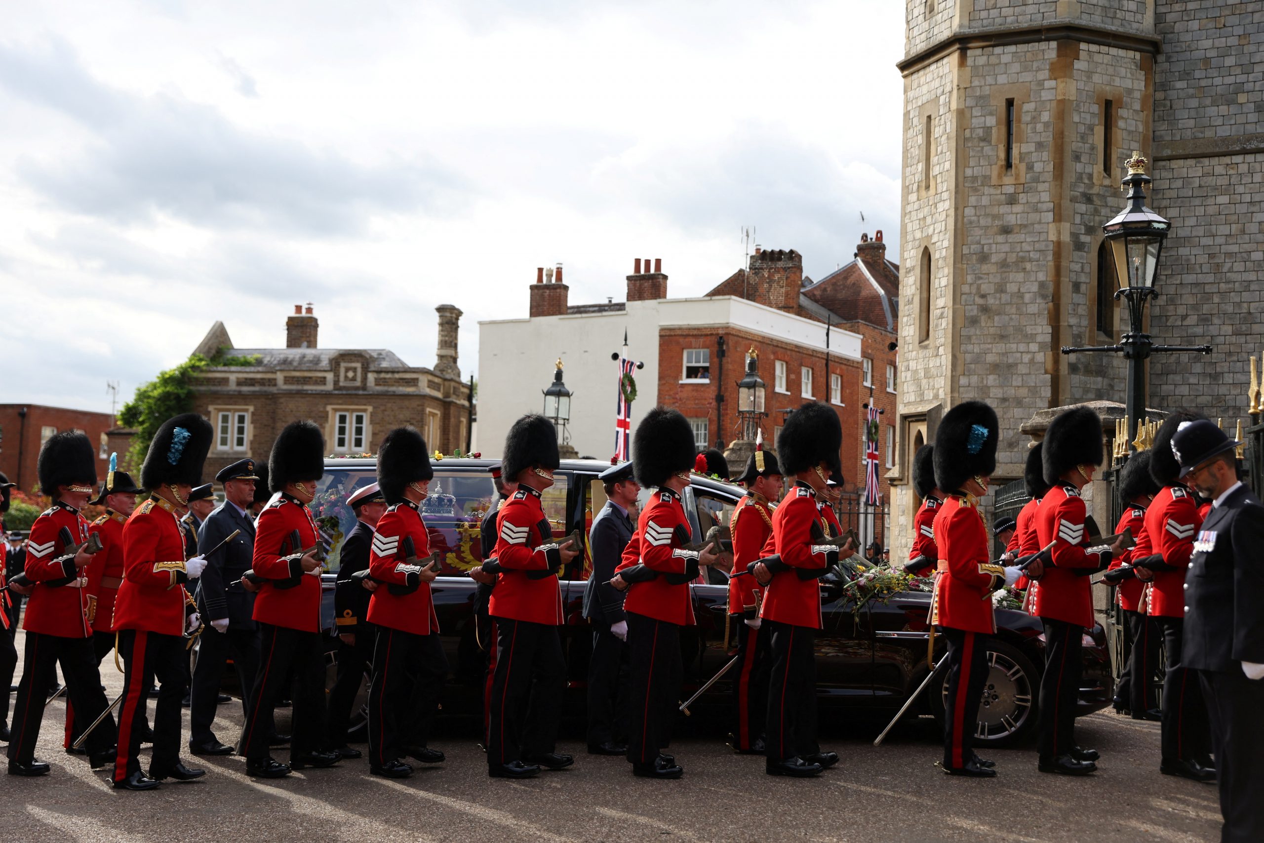 Pogrebni sprevod s kraljičino krsto je prispel do gradu Windsor, kjer se bo prek grajskega dvorišča podal do kapele svetega Jurija. V kapeli bo potekal še en obred, na njem bo prisostvovalo okoli 800 ljudi. Ob 19.30 po lokalnem času bo potekal v ožjem družinskem krogu še pogrebni obred, po katerem bo krsta kraljice Elizabete II. premaknjena v družinsko grobnico. Tam bo ležala ob svojem lani preminulem soprogu, princu Filipu.