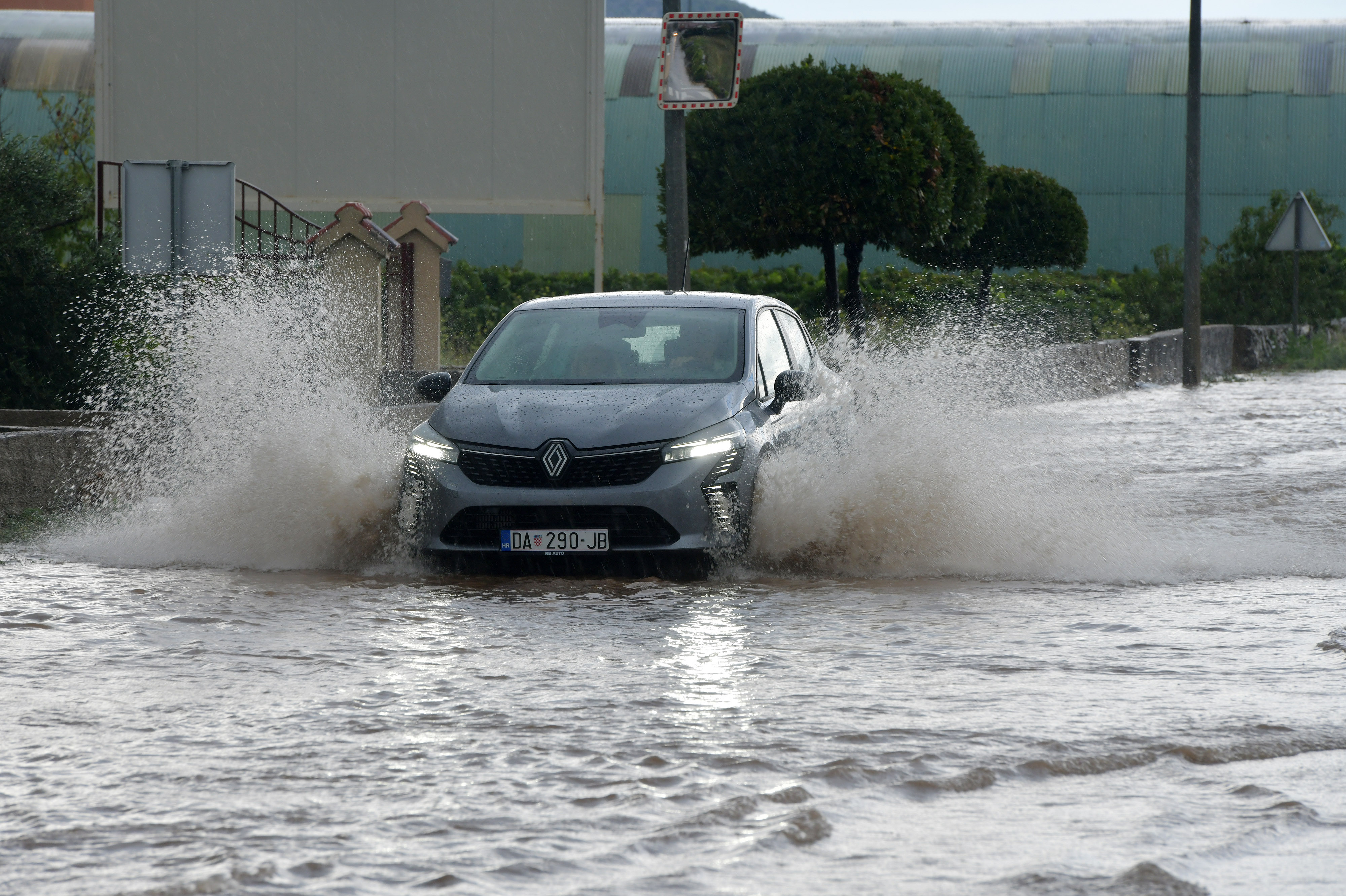 Promet je zaradi močnega dežja, hudournikov in dvignjenih jaškov otežen tudi na mestnih cestah v Šibeniku. Prav tako imajo težave vozniki na območju Tribunja in Sovlja, kjer je po ocenah ekipe Šibenik Meteo padla največja količina padavin – tudi do 150 litrov na kvadratni meter.