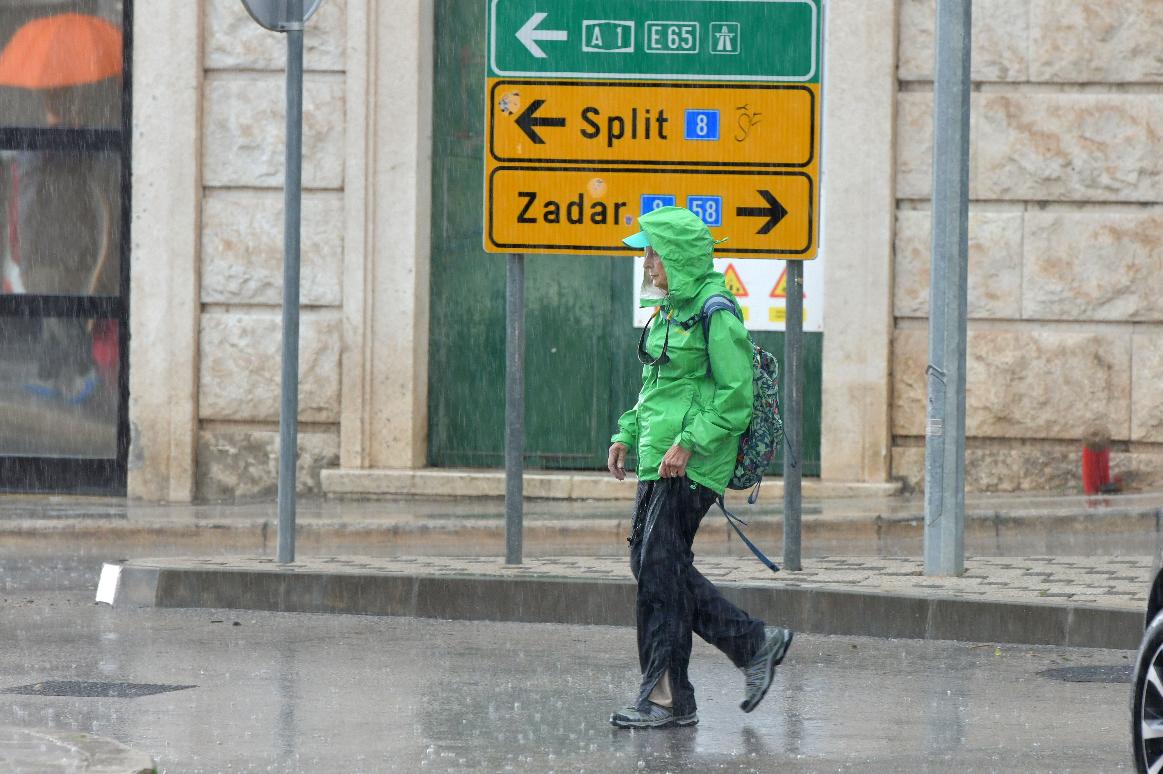 Na splitskem območju so padavine znašale med 10 in 50 litri, vendar v mnogih krajih dež še vedno pada in bo občasno padal do konca dneva, poroča Dalmacija Danas.