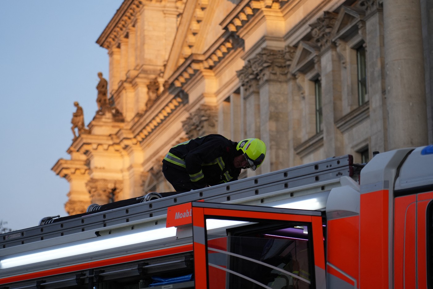 Zaradi intervencije so morali v bližini stavbe Reichstaga omejiti promet in preusmeriti avtobusne linije, ki vozijo mimo stavbe parlamenta, poroča dpa.
