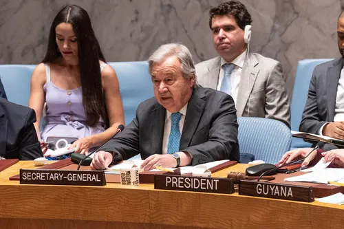 Generalni sekretar Združenih narodov Antonio Guterres je dejal, da ameriški napad na iranske jedrske objekte "zaznamuje nevaren preobrat v regiji, ki je že tako ali tako prizadeta." "Pred dvema dnevoma sem v tej dvorani neposredno pozval: dajte miru priložnost. Ta poziv ni bil upoštevan," je dejal na nedeljski izredni seji Varnostnega sveta Združenih narodov. Guterres je dejal, da je obsodil vsako vojaško eskalacijo na Bližnjem vzhodu in dodal, da ljudje v regiji ne morejo prenesti še enega cikla uničenja. "Pa vendar zdaj tvegamo, da se bomo pogreznili v luknjo maščevanja za maščevanjem."