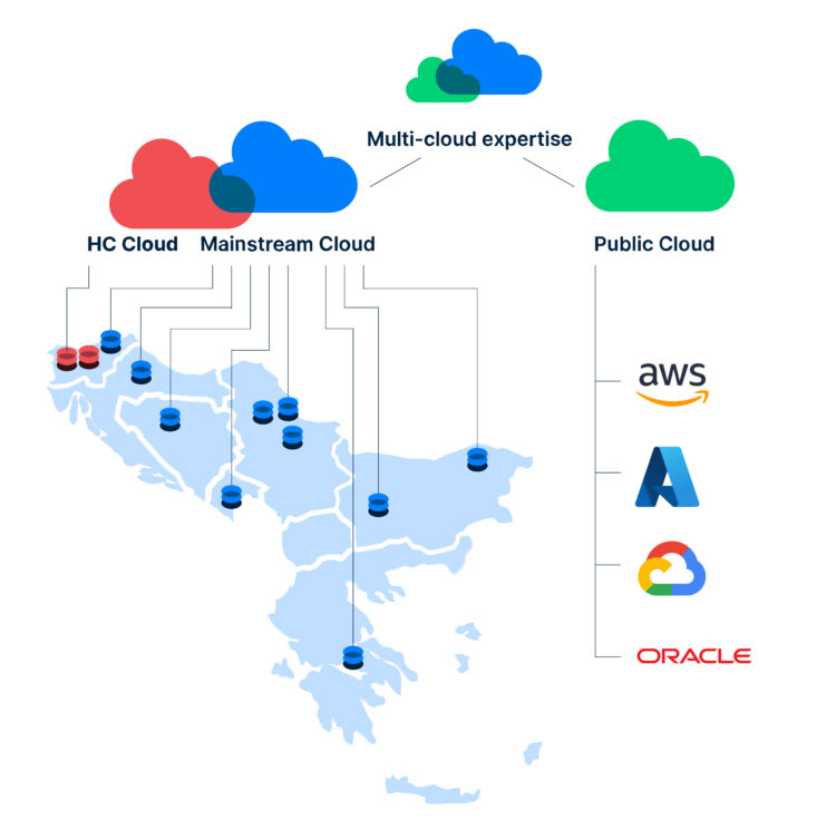 Poleg storitev na javnih cloud platformah, kot sta Amazon Web Services (AWS) in Microsoft Azure, lahko Mainstream in HC Center s svojo lastno cloud infrastrukturo podjetjem pomagata hitreje in varneje uresničiti digitalne ambicije.