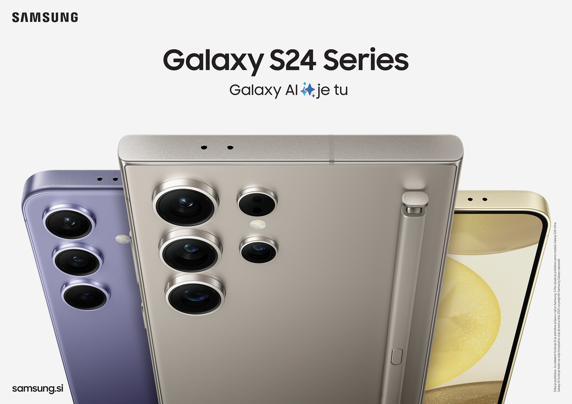 - Ob nakupu telefona Galaxy S24, S24+, Galaxy Z Flip6 ali Galaxy S23 FE, S23 prejmete fitnes zapestnico Galaxy Fit3 in brezžične slušalke Galaxy Buds3 Pro.