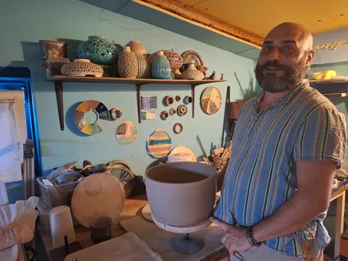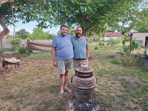 Sam je izdelal tudi keramične ploščice, ki krasijo steno v kuhinji, del kopalnice in keramični umivalnik. Njegovi so krožniki, skodelice za čaj in kavo ter okrasne luči. V kraju, v katerem živita, sta v glavnem obdana s starejšimi sosedami. ''Prijazne so. Tudi v kraju nimava težav zaradi svoje spolne usmerjenosti. Vsaj midva jih ne zaznava. Mogoče naju kdo ogovarja, vendar tega ne veva, saj nama madžarščina še vedno predstavlja veliko oviro,'' sta si enotna.