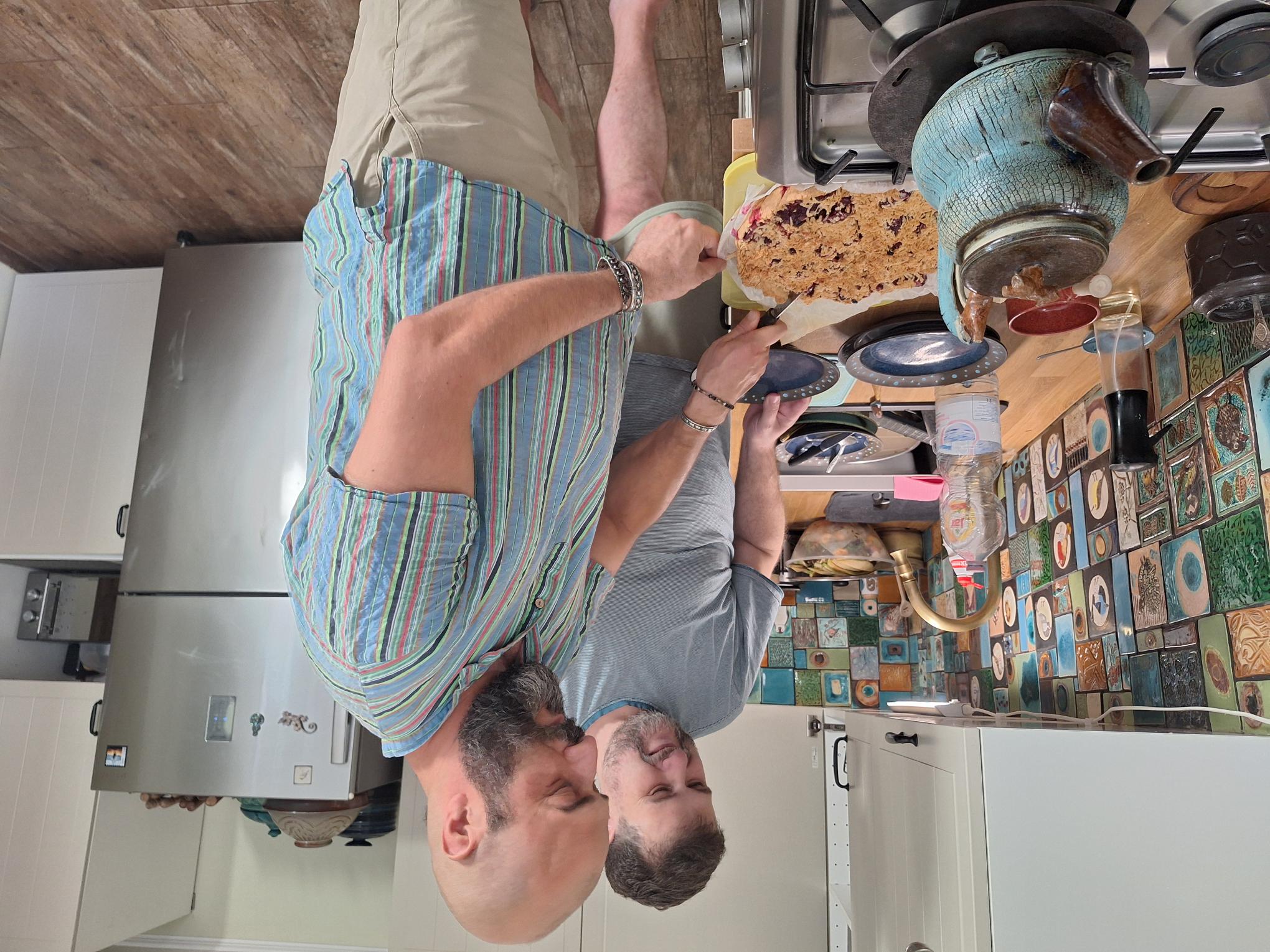 "Spomnim se, da je bila prva parada ponosa na Madžarskem, ki sva se je udeležila, leta 2016, izvedena v strogo varovanem in z ograjami zagrajenem kordonu, iz katerega kljub visoki vročini vse do konca povorke nisi mogel izstopiti, prav tako se med potjo nihče ni mogel pridružiti. Nato se je vsako leto ta prostor nekoliko širil, zaščitne ograje so bile le na križiščih in zadnja leta, razen policijskega varovanja, ni bilo postavljenih nobenih zaščitnih ovir. Tudi na uradu za migracije, kamor hodiva vsaki dve leti urejat dokumente, prva leta nikjer ni bilo zaslediti informacije, da je mogoče skleniti partnersko zvezo. Danes je ta informacija sicer navedena v oklepaju, a jasno vidna na spletnih straneh urada," razlaga Fuad, medtem ko mi postreže s slivovo pito, ki jo je pripravil.