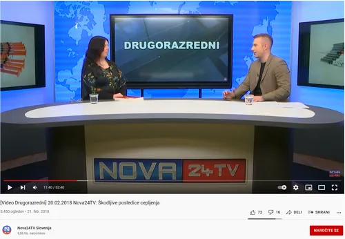 V studiu so takrat celo gostili slovensko doktorico proticepilstva Matejo Černič, sociologinjo, ki je na Fakulteti za uporabne družbene študije v Novi Gorici doktorirala s temo "Ideološki konstrukti o cepljenju", zbirko neznanstvenih in zavajajočih trditev o nevarnosti in neučinkovitosti cepiv.