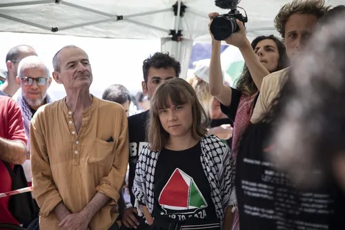 Ko je novinar programa Democracy Now vprašal, kako boj za svobodo Palestincev sovpada z vprašanji podnebnih sprememb, je Thunberg odgovorila: "Menim, da se teh bojev ne da ločiti. Ne moremo imeti podnebne pravičnosti brez socialne pravičnosti. Razlog, da sem podnebna aktivistka, ni v tem, da želim zaščititi drevesa. Podnebna aktivistka sem, ker mi je mar za ljudi in dobrobit planeta, to pa je tesno prepleteno. Ko na primer gledamo genocid v Gazi, so nekateri zelo očitni znaki, da se ekocid, uničenje okolja, zelo pogosto uporablja v vojni za zatiranje ljudi."