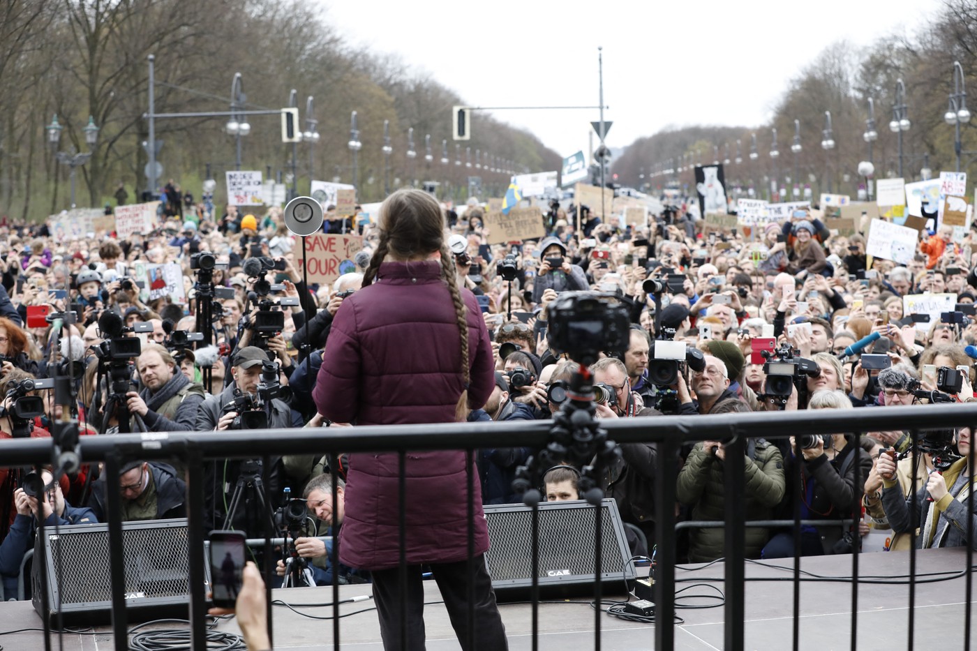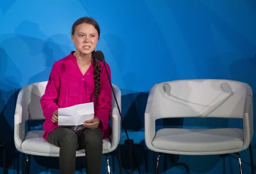 Kmalu po začetku svojih – tedaj osamljenih – protestov je Thunberg začela nagovarjati svetovne voditelje. Eden od njenih govorov, ki se je zapisal v zgodovino, je bil na podnebnem vrhu Združenih narodov leta 2019. "Vse to je povsem zgrešeno," je dejala. "Ne bi smela biti tukaj. Morala bi biti v šoli na drugi strani oceana. A vi prihajate k nam, mladim, po upanje. Kako si drznete," je udrihala z naraščajočo jezo v glasu in solznimi očmi. "Ukradli ste mi sanje in otroštvo s svojimi praznimi besedami." Smo na robu množičnega izumrtja, je poudarila, "vse, o čemer znate govoriti, pa so denar in pravljice o večni gospodarski rasti". "Kako si drznete?!"