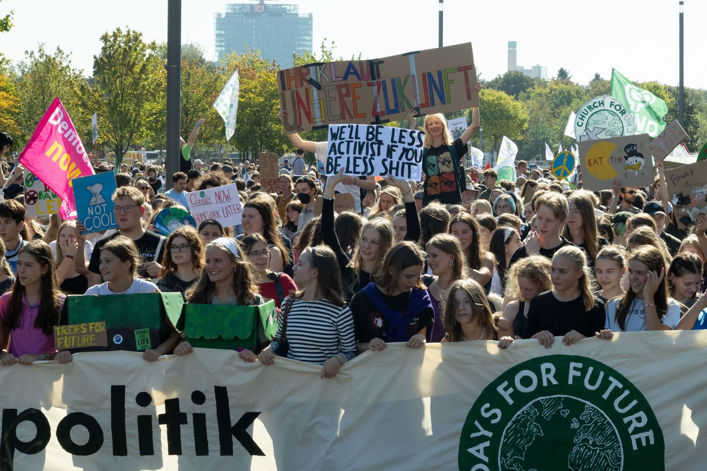 Thunberg se v svojih govorih vedno opira na znanstvena dognanja. Od vlad je zahtevala zmanjšanje emisij toplogrednih plinov v skladu s pariškim sporazumom, kar bi zajezilo dvig povprečne temperature na 1,5 stopinje Celzija v primerjavi s predindustrijsko dobo. Če se bo povprečna temperatura dvignila nad to mejo – kar se zdi čedalje bolj neizogibno – bi bile posledice lahko katastrofalne: od zloma ekosistemov in izumrtja številnih živalskih vrst do ekstremnih vremenskih pojavov, velike prehranske nestabilnosti in milijonov podnebnih beguncev. Ob tem poudarja, da imajo razvite države večjo dolžnost do planeta, saj so odgovorne za večji delež emisij. Posledice pa neproporcionalno nosi globalni jug. Na vrhu Združenih narodov leta 2019 je bila Thunberg odločna: "Če bi res razumeli razmere in kljub temu ne bi ukrepali, bi to pomenilo, da ste zlobni. Tega pa ne želim verjeti."