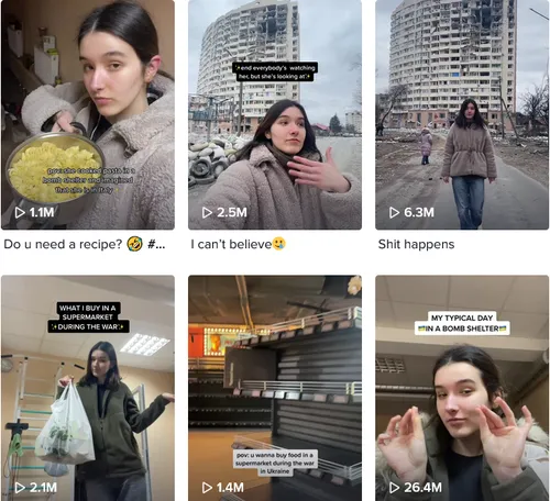 Ukrajinska fotografinja Valerija Šašenok, ki se na družbenih omrežjih pojavlja pod imenom Valerish, poskuša v videih na TikToku prikazati, kako je videti "normalno" življenje med vojno, ki divja v njeni domovini.